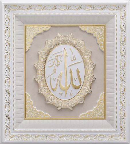 Üçlü 8 Köşeli Ayet Az Taşlı İsmi Celil-İsmi Nebi-Ayet-el Kürsi - Beyaz Sarı