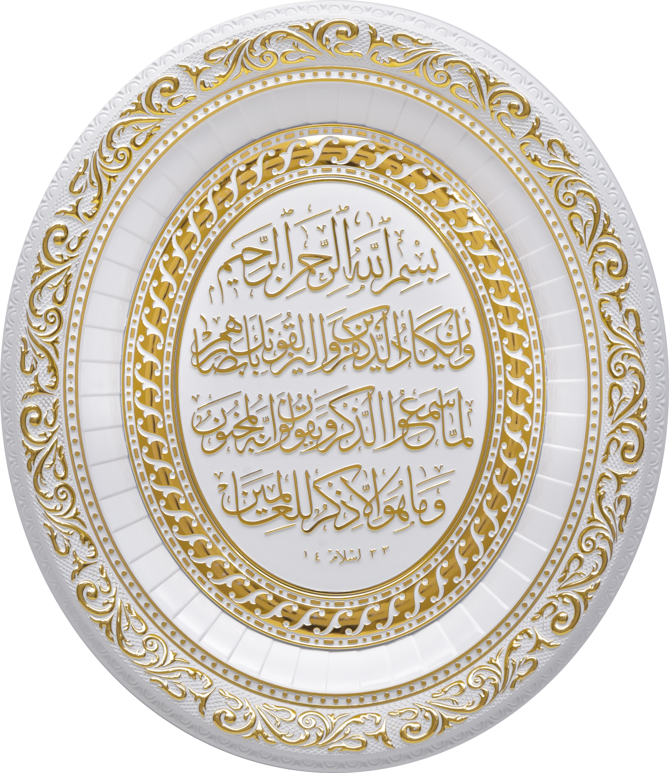 Oval Ayetli Nazar - Beyaz Sarı