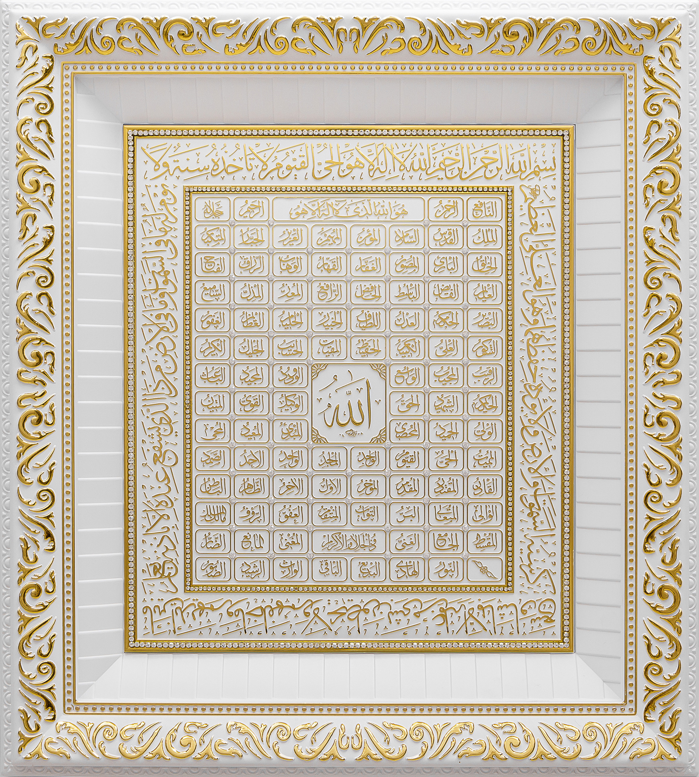Üçlü 8 Köşeli Ayet Tam Taşlı İsmi Celil-İsmi Nebi-Esma - Beyaz Sarı