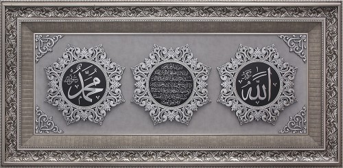 Üçlü 8 Köşeli Ayet Paspartu Taşlı İsmi Celil-İsmi Nebi-Esma - Gümüş