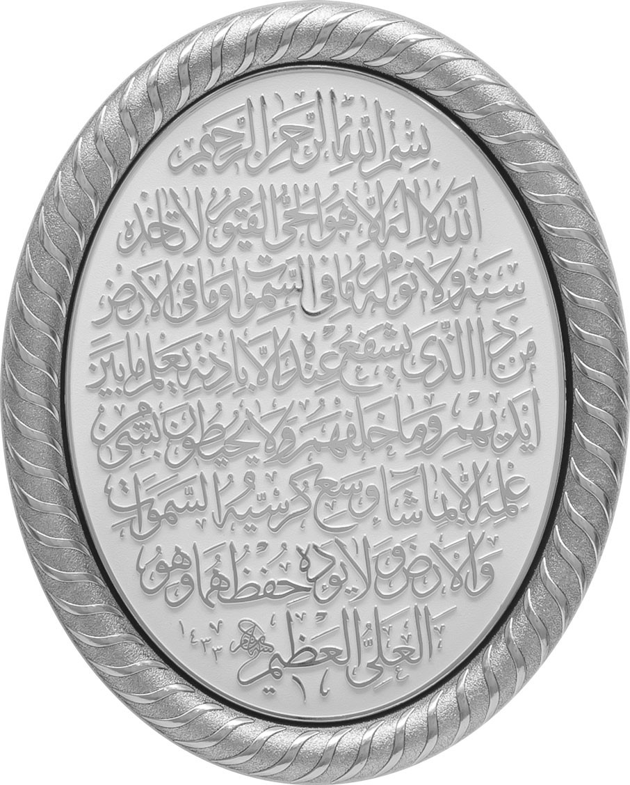 Oval Ayetli Ayet-el Kürsi - Beyaz Gümüş