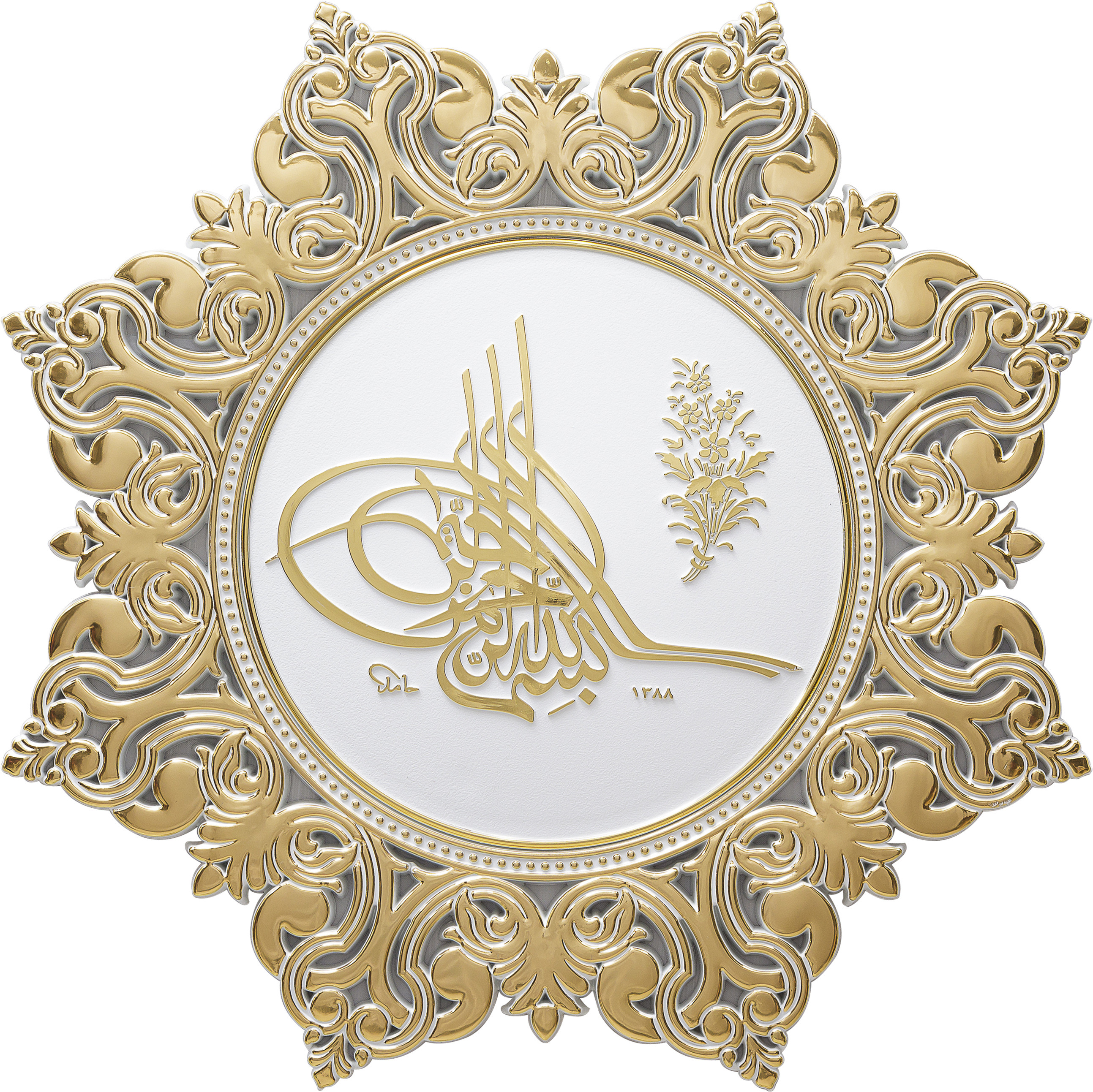 8 Köşe Yıldız Ayet Tuğra - Beyaz Sarı